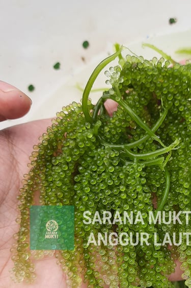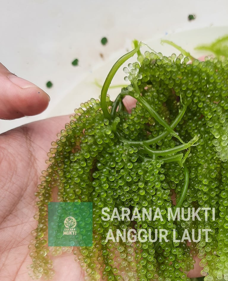 Anggur Laut Jenis Caulerpa Lentilifera yang merupakan superfood hasil budidaya di tambak sekitar laut utara Jepara, Jawa Tengah dengan sirkulasi air laut bebas polutan terus menerus. Anggur Laut kami dipanen pada hari yang sama dengan pengiriman sehingga kuat beberapa hari di pejalanan dengan packaging Fresh Guard Box khas Sarana Mukti Anggur Laut. Rasa cenderung asin gurih cocok sekali dibuat Urapan