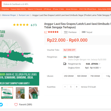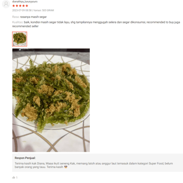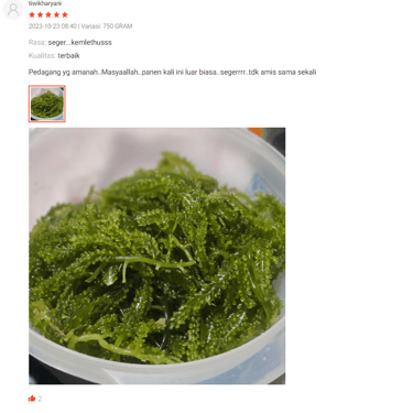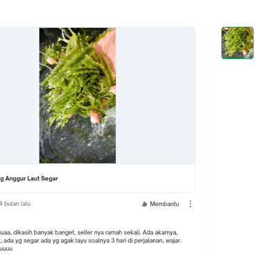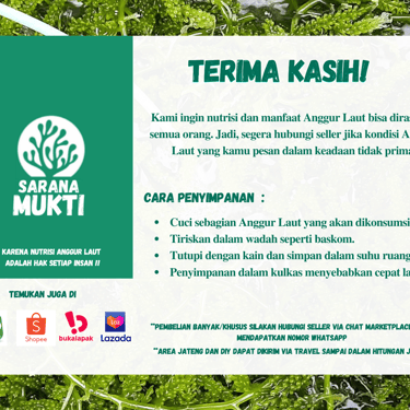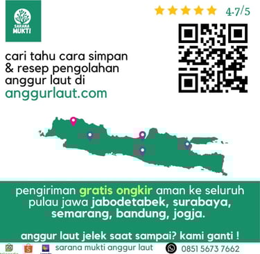 "Tak perlu khawatir! Kami memberikan jaminan pengiriman GRATIS ke seluruh Pulau Jawa dan garansi penggantian Anggur Laut segar pada pengiriman berikutnya. Kami memahami kekhawatiran Anda terhadap pengiriman Anggur Laut yang segar namun rentan rusak. Keamanan pengiriman barang kami adalah prioritas utama."