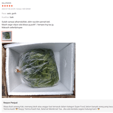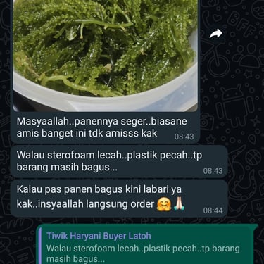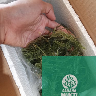 "Kami mengutamakan keamanan produk kami dengan sistem khusus packing. Setiap anggur laut dikemas dengan lapisan styrofoam ringan tapi kokoh, kardus kuat, dan plastik tahan cuaca untuk menjaga kesegarannya. Ini membantu menjaga suhu ideal dan mencegah perubahan suhu ekstrem serta kelembaban selama pengiriman, sehingga anggur laut kami tiba dalam kondisi optimal dan aman untuk dikonsumsi."